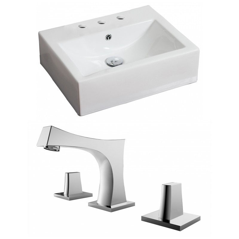 American Imaginations AI-15112 Rectangle Vessel Set In White Color With 8-in. o.c. CUPC Faucet