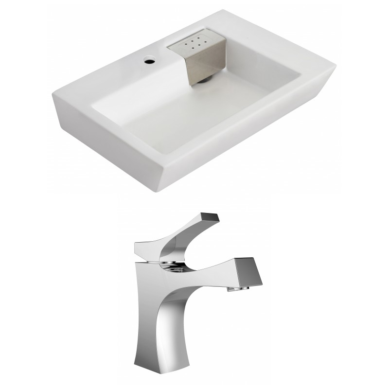 It features a rectangle shape. This vessel set is designed to be installed as a wall mount vessel set. It is constructed with ceramic. This vessel set comes with a enamel glaze finish in White color. It is designed for a single hole faucet.