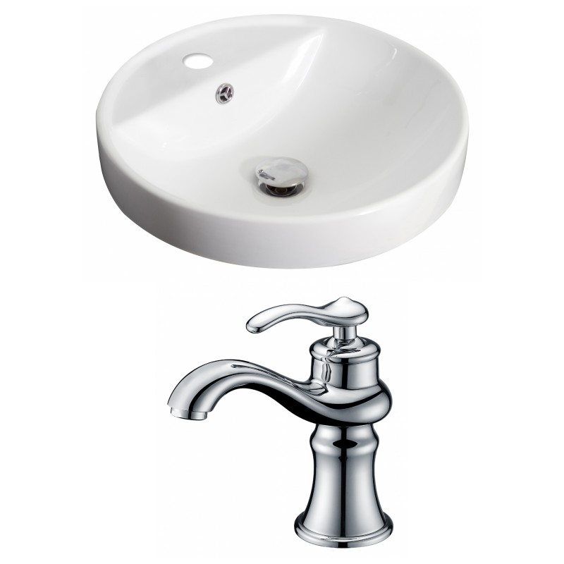 American Imaginations AI-15169 Round Vessel Set In White Color With Single Hole CUPC Faucet