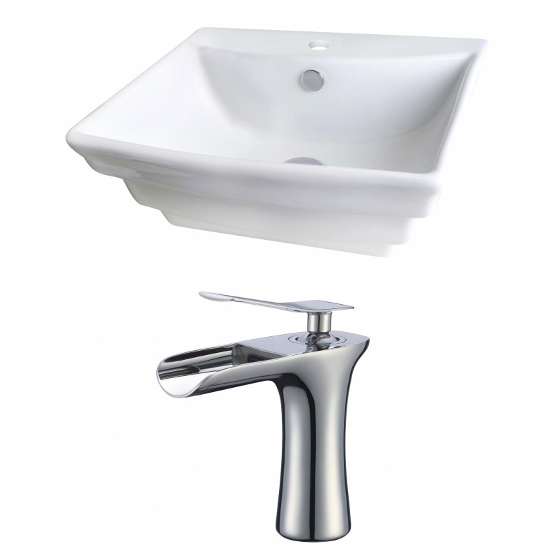 American Imaginations AI-17799 Rectangle Vessel Set In White Color With Single Hole CUPC Faucet