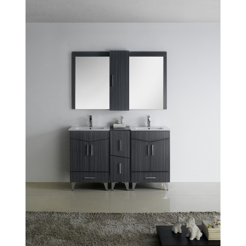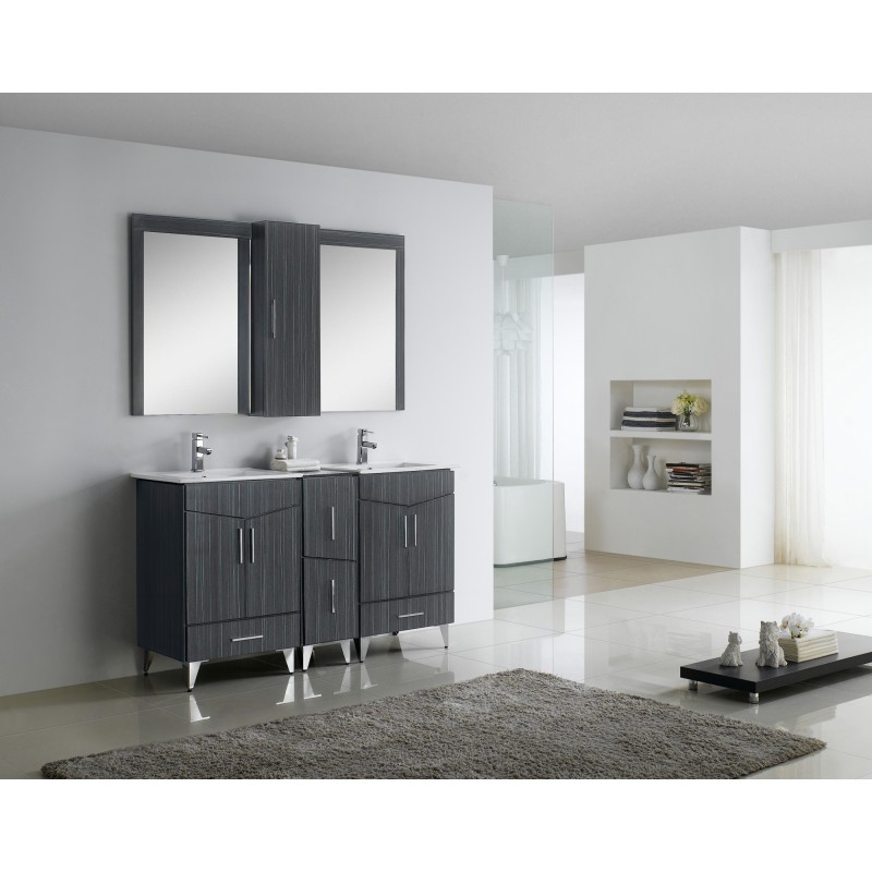 This modern vanity base set belongs to the exquisite Zen design series. It features a rectangle shape. This vanity base set is designed to be installed as a floor mount vanity base set. It is constructed with plywood-melamine. This vanity base set comes with a melamine finish in Dawn Grey color.