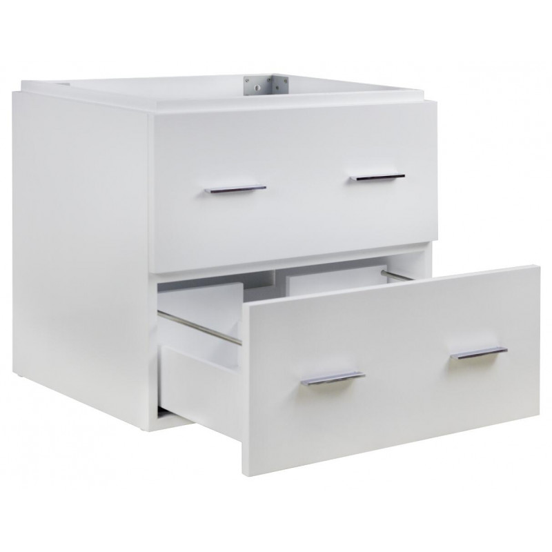 This modern vanity set belongs to the exquisite Xena design series. It features a rectangle shape. This vanity set is designed to be installed as a wall mount vanity set. It is constructed with plywood-melamine. This vanity set comes with a melamine finish in White color. It is designed for a 1 hole faucet.