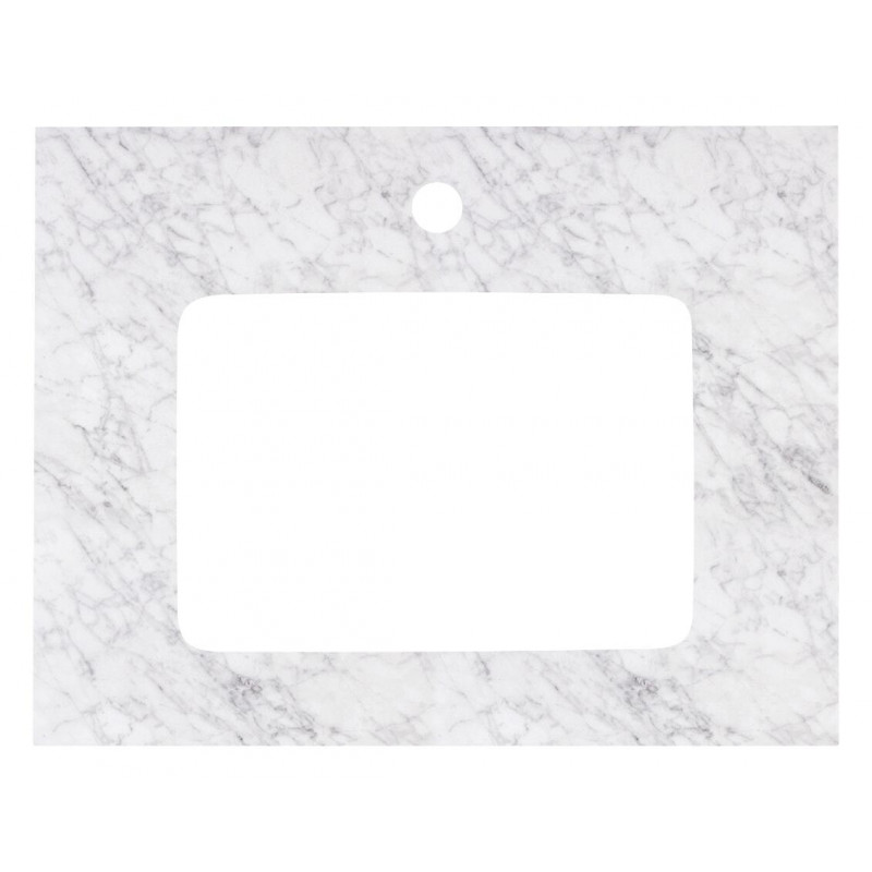 American Imaginations AI-19241 68.75-in. W Floor Mount Distressed Antique Walnut Vanity Set For 1 Hole Drilling Bianca Carara Top Biscuit UM Sink