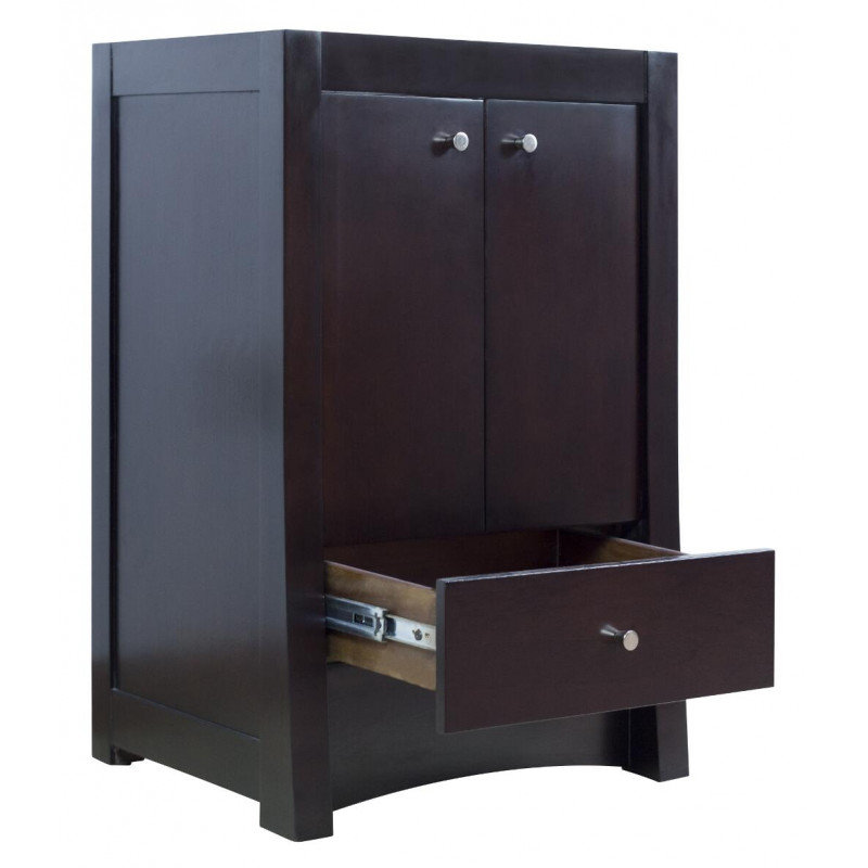 This transitional vanity set belongs to the exquisite Elite design series. It features a rectangle shape. This vanity set is designed to be installed as a floor mount vanity set. It is constructed with birch wood-veneer. This vanity set comes with a lacquer-stain finish in Distressed Antique Walnut color. It is designed for a 1 hole faucet.