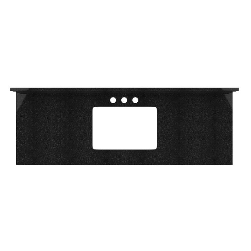 American Imaginations AI-19297 116.45-in. W Floor Mount Distressed Antique Walnut Vanity Set For 3H4-in. Drilling Black Galaxy Top White UM Sink