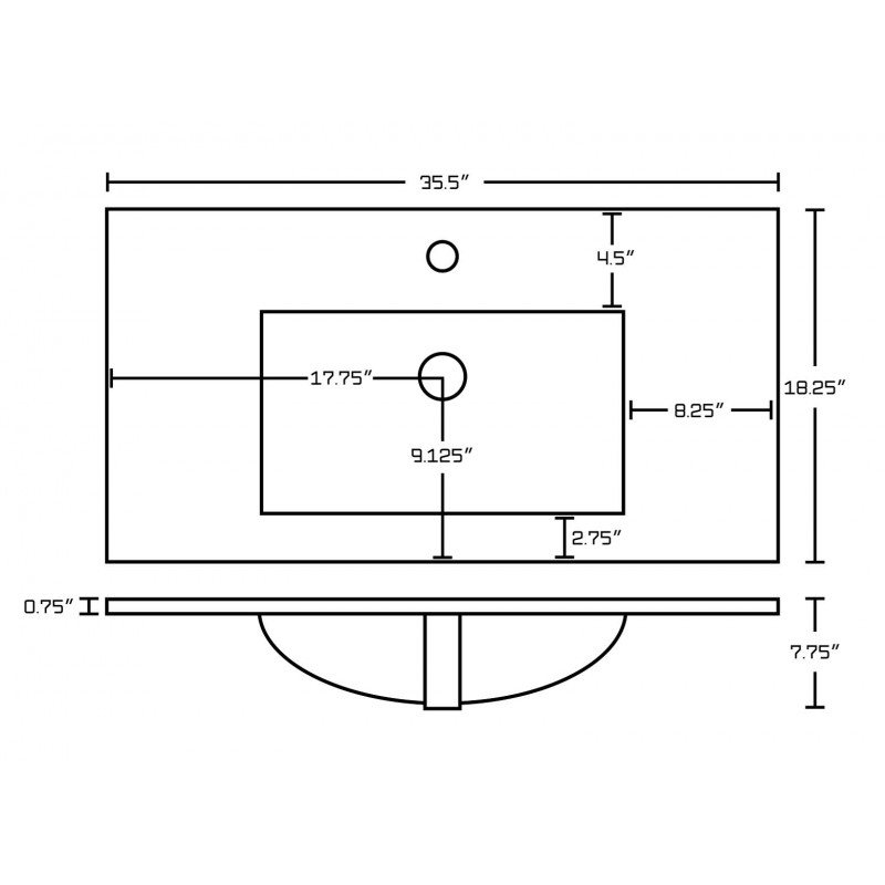 American Imaginations AI-19418 35.5-in. W Floor Mount White Vanity Set For 1 Hole Drilling