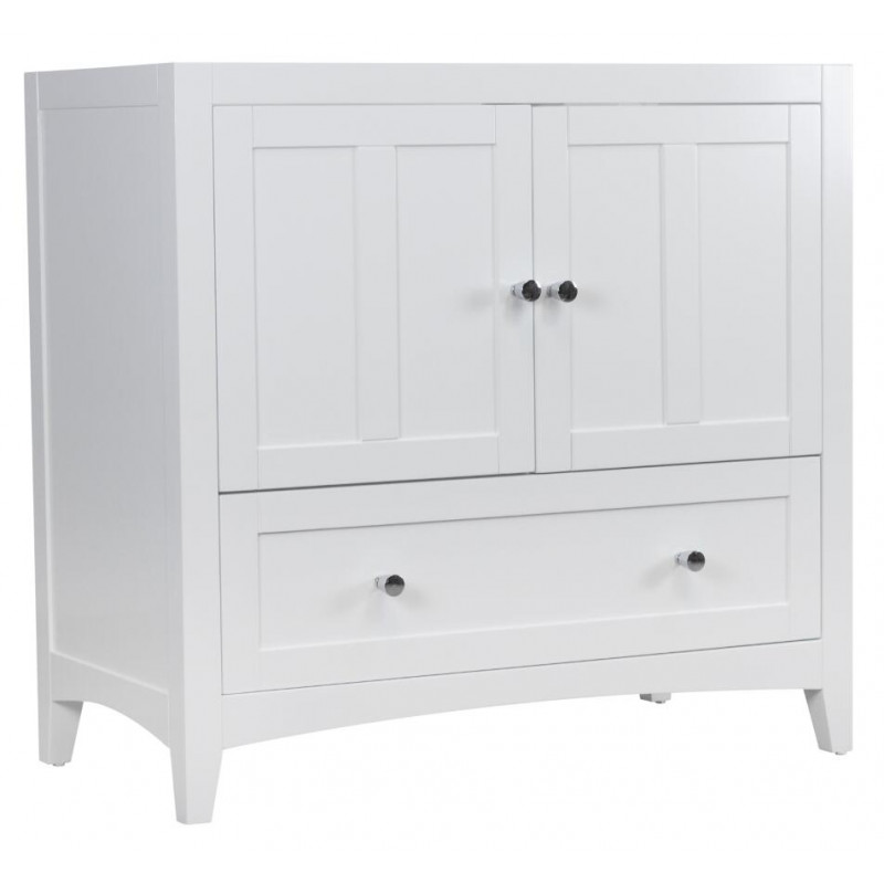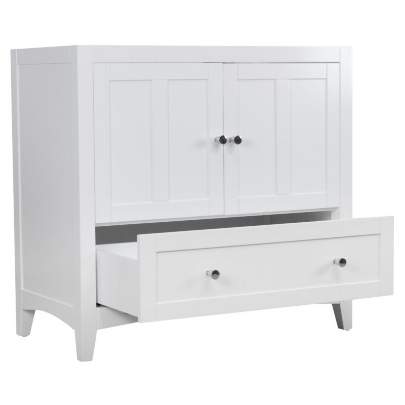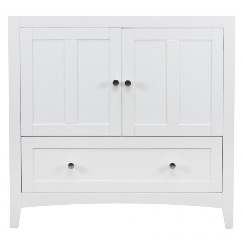 This modern vanity set belongs to the exquisite Shaker design series. It features a rectangle shape. This vanity set is designed to be installed as a floor mount vanity set. It is constructed with plywood-veneer. This vanity set comes with a lacquer-paint finish in White color. It is designed for a 3h8-in. faucet.