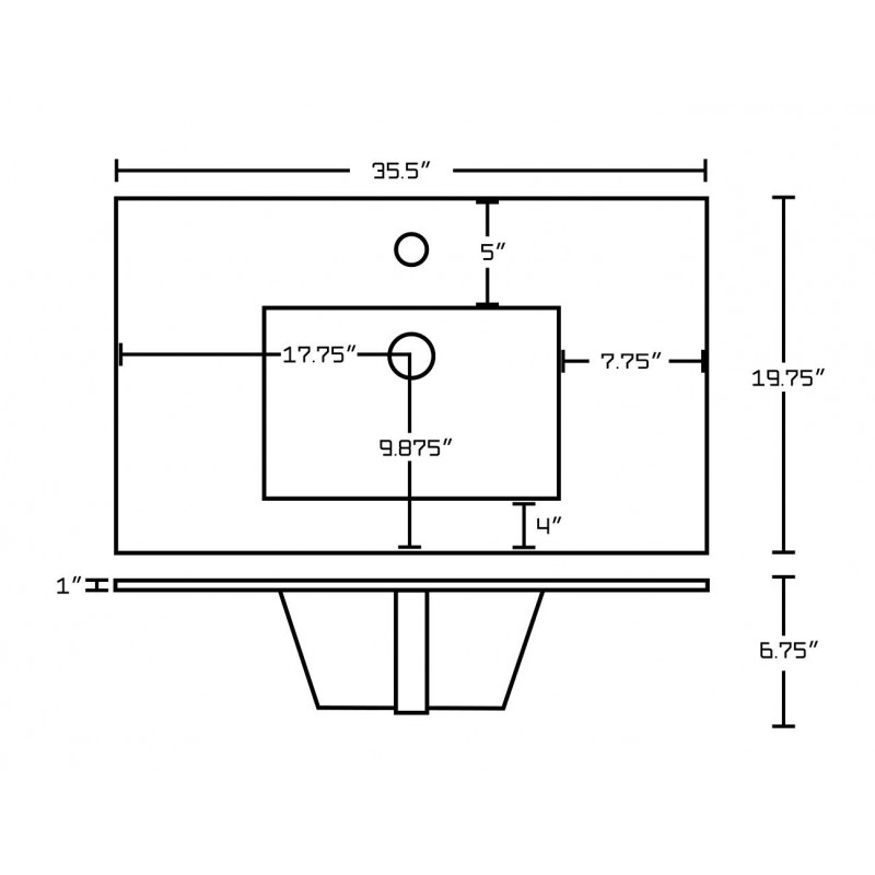American Imaginations AI-20704 35.5-in. W 1 Hole Ceramic Top Set In White Color - Overflow Drain Incl.