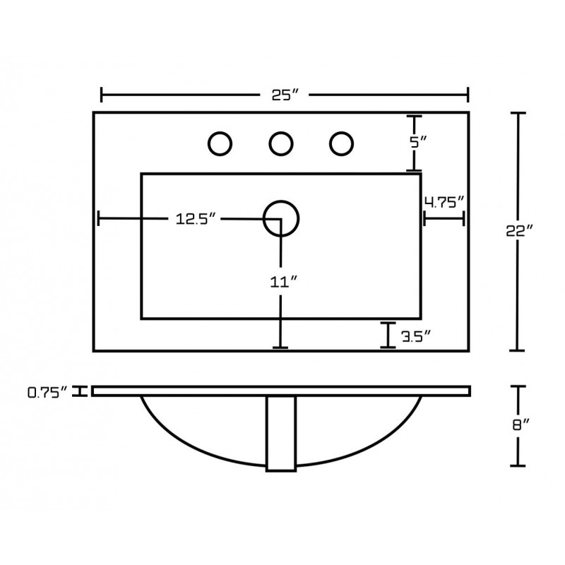American Imaginations AI-21244 25-in. W 3H8-in. Ceramic Top Set In White Color