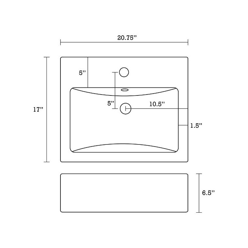 American Imaginations AI-22659 20.75-in. W Semi-Recessed White Vessel Set For 1 Hole Center Faucet - Faucet Included