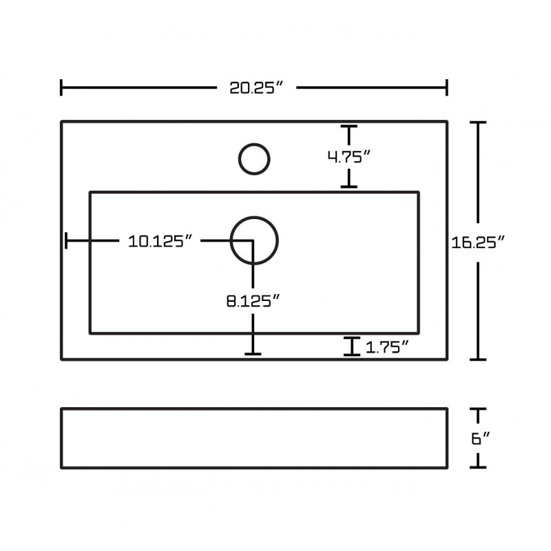 American Imaginations AI-26096 20.25-in. W Wall Mount White Vessel Set For 1 Hole Center Faucet - Faucet Included