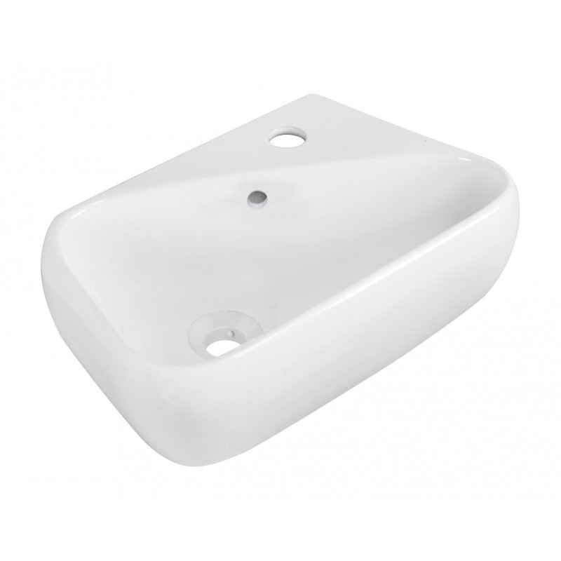 It features a rectangle shape. This vessel set is designed to be installed as a wall mount vessel set. It is constructed with ceramic. This vessel set comes with a enamel glaze finish in White color. It is designed for a 1 hole faucet.