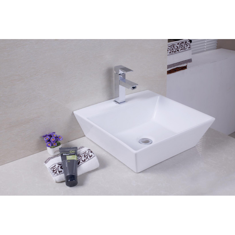 It features a square shape. This vessel set is designed to be installed as a above counter vessel set. It is constructed with ceramic. This vessel set comes with a enamel glaze finish in White color. It is designed for a 1 hole faucet.