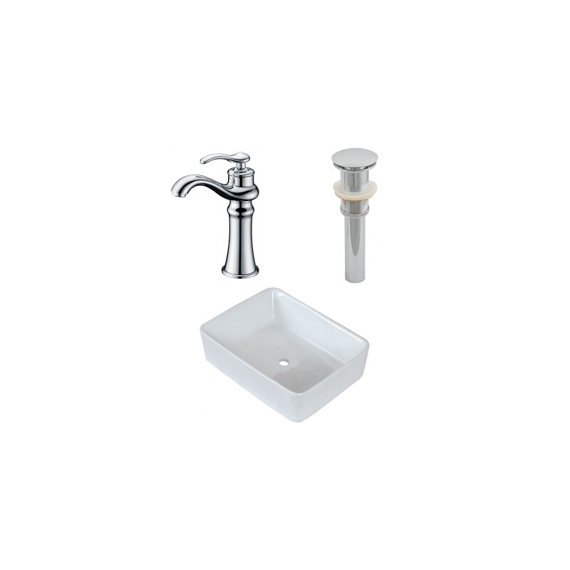 It features a rectangle shape. This vessel set is designed to be installed as a above counter vessel set. It is constructed with ceramic. This vessel set comes with a enamel glaze finish in White color. This transitional vessel set product is CSA certified. It is designed for a deck mount faucet.
