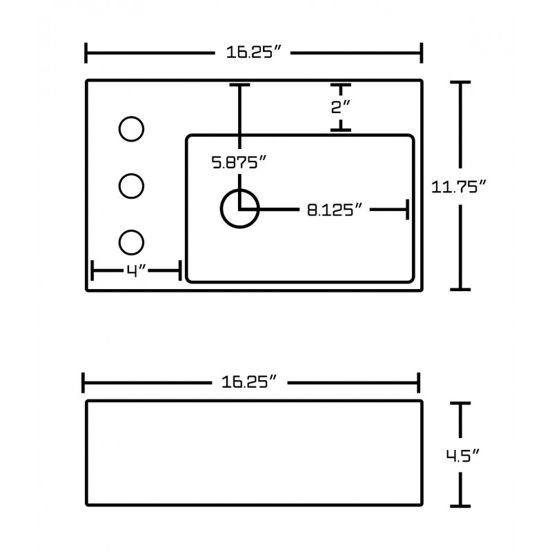 American Imaginations AI-26544 16.25-in. W Wall Mount White Vessel Set For 3H8-in. Left Faucet - Faucet Included