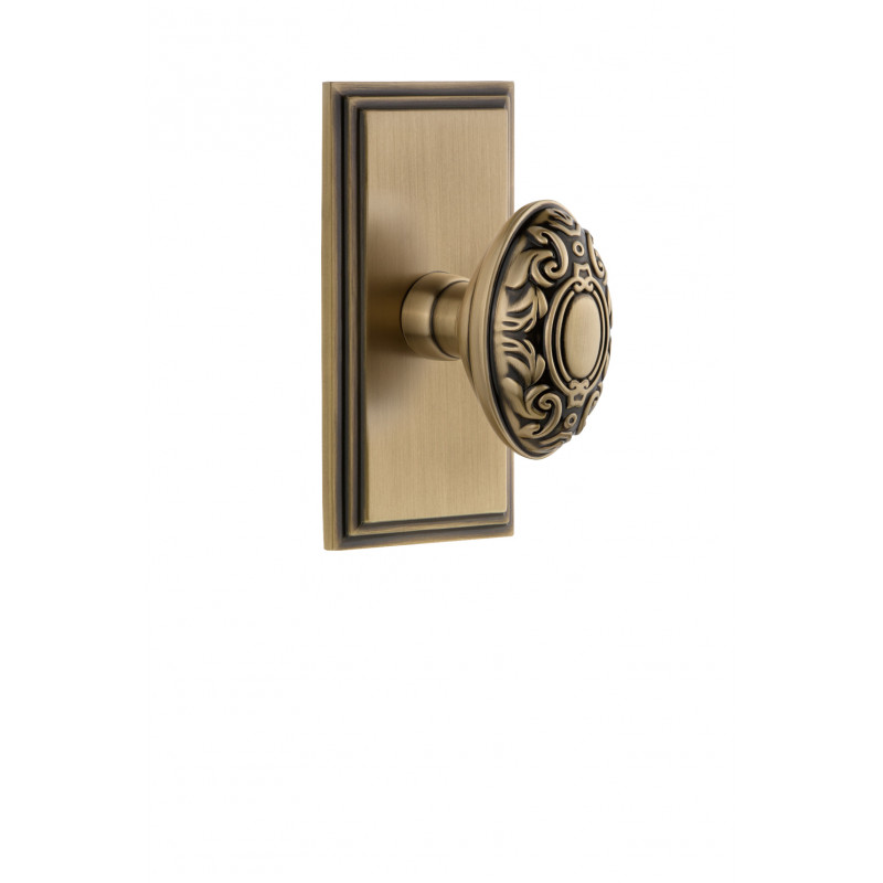 The Carre plate, with its clean parallel lines and uncomplicated shape provides for endless versatility. Add the Grande Victorian knob for an embellished allure reverent of the ages. All Grandeur products are created from solid (not plated) forged brass.