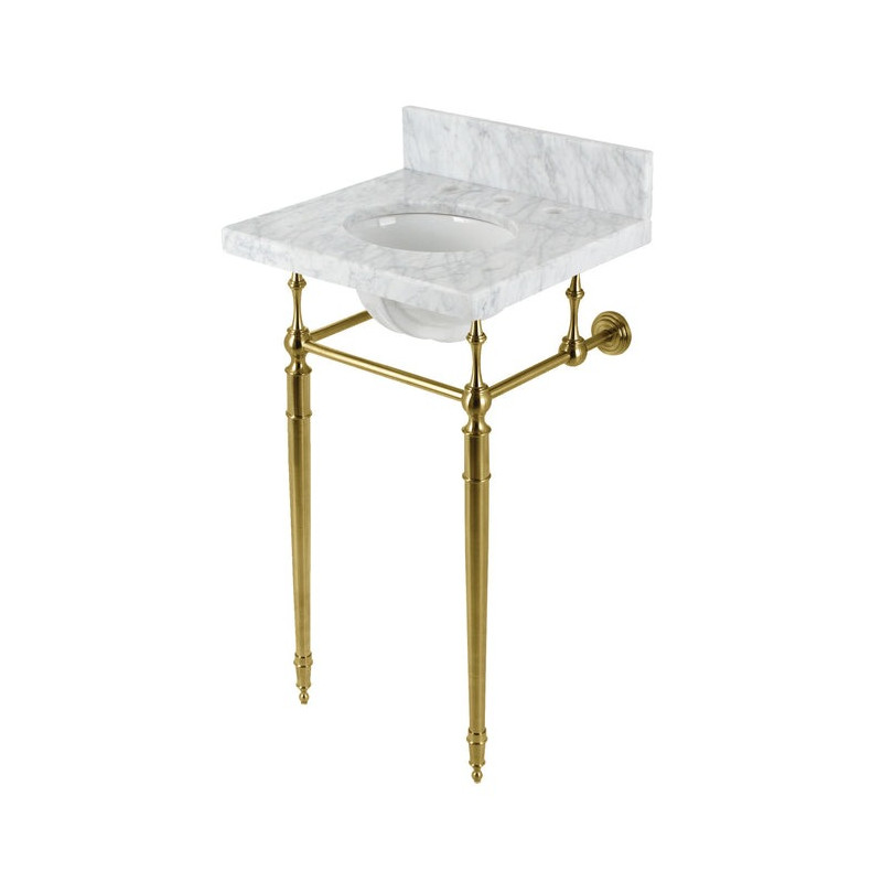 Kingston Brass KVPB1917M Carrara Marble Console Sink with Brass Legs (8" Faucet Drillings), Marble White