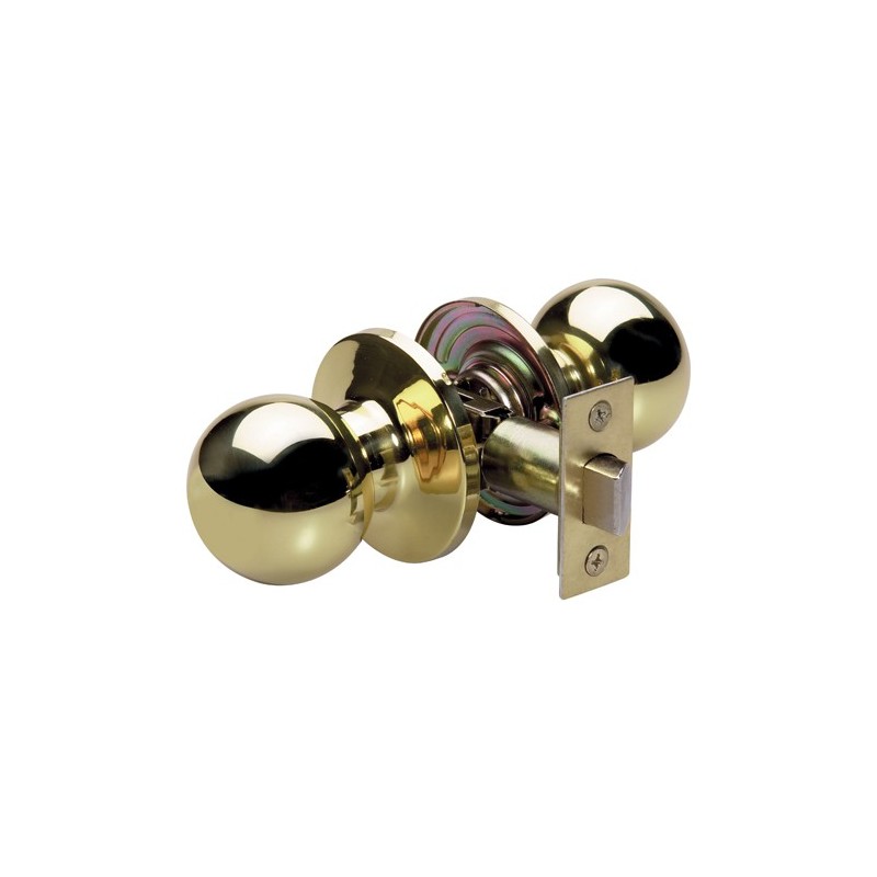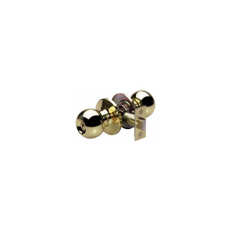 The Master Lock features a ball style knob with six-way adjustable latch to fit all doors with 2-3/8in or 2-3/4in backset, square, rounded corners, or drive-in. This knob offers ANSI Grade 3 performance for interior locking applications. The polished brass finish provides a sleek appearance. The Limited Lifetime Warranty provides peace of mind from a brand you can trust.