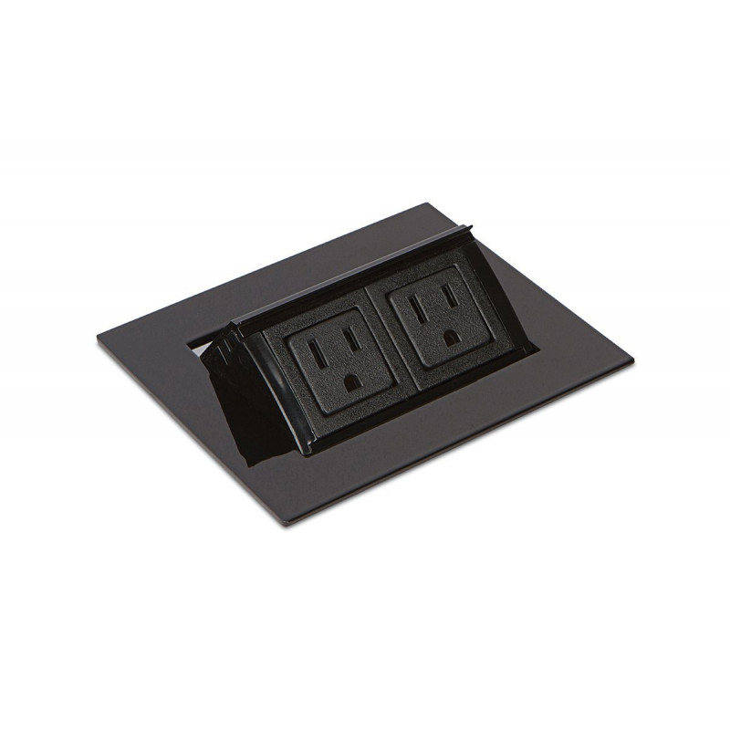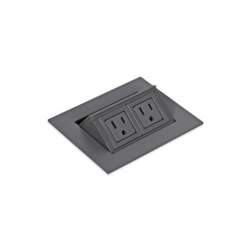 Flip-Up unit lays flat, nearly flush with the surface, then pops up when needed with a simple touch to the cover to access two power outlets.